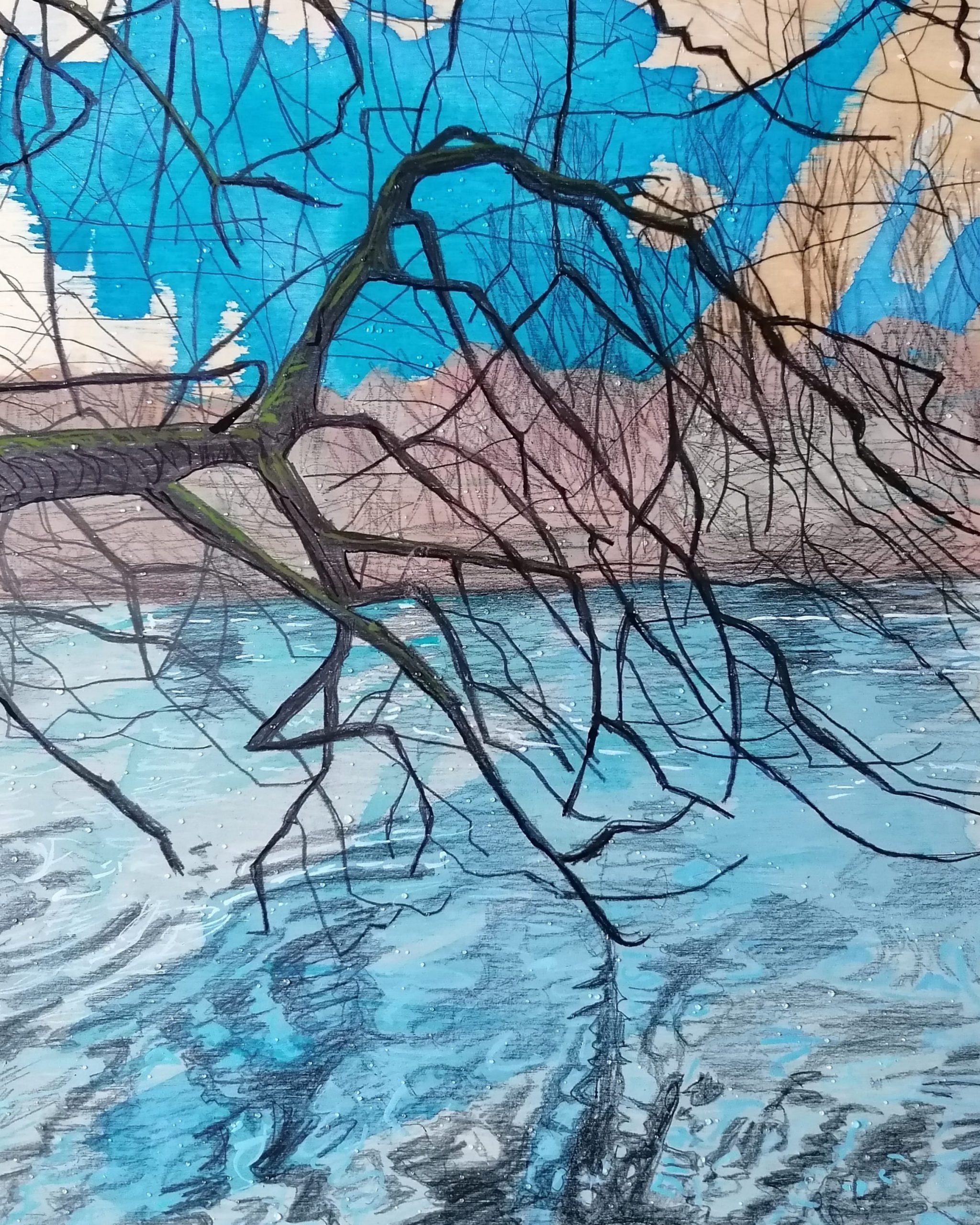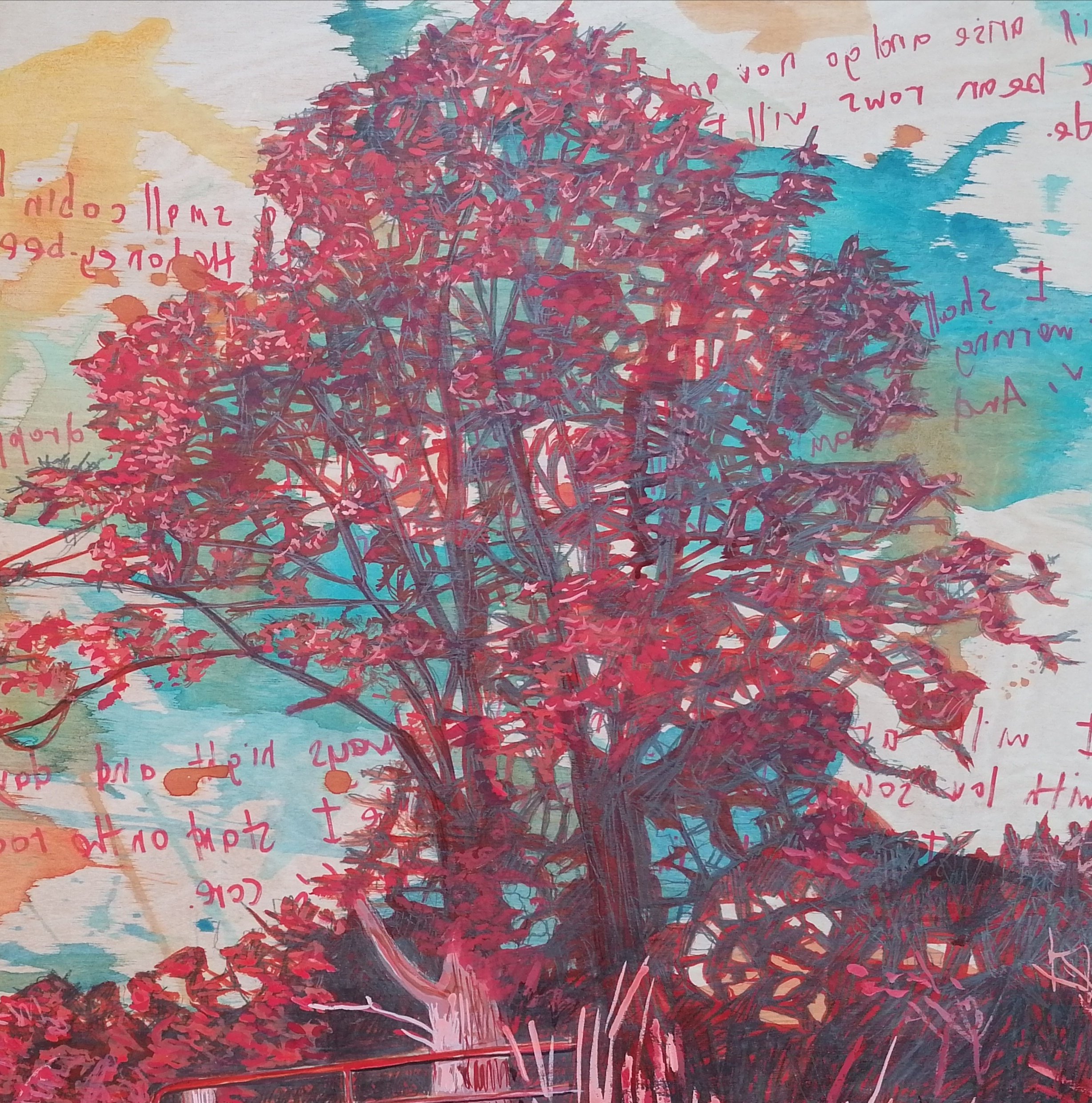 2021 New work, experimenting with pencil and acrylic ink on wood. ‘Invisible Lines‘ documenting my local area during the 5km restrictions, the invisible lines of the boundaries around our homes.