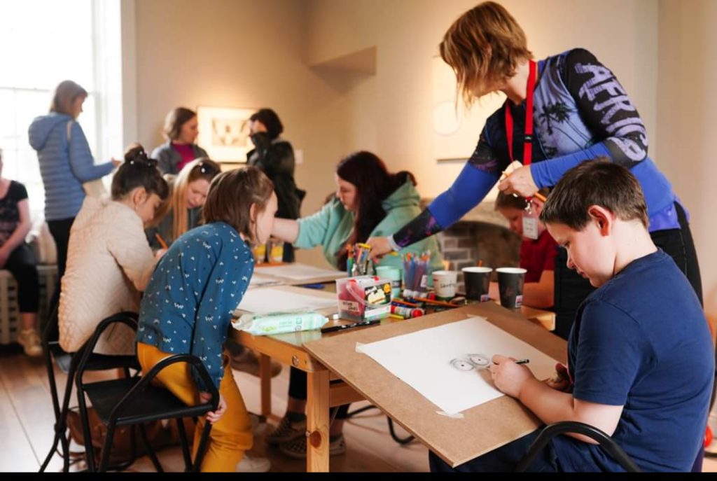 Art workshops in Irish Georgian Society exhibition space, facilitated by Rachel Burke and Niamh Moran. Four booked-in free workshops run over two days as part of Crunnui na nog. Morning workshops catering towards under 12’s and afternoon workshops for teens.